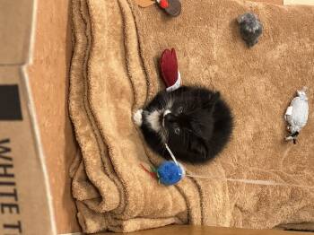 Penguin is a high energy tuxedo kitten. She loves to run, play and climb the cat trees.