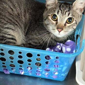 This handsome boy is Nikou. He is one-year-old and weighs 10 lb.Nikou has a gorgeous soft shorthaired striped brown tabby...