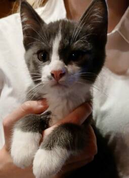 Loves his feather toy! Loves to play and cuddle. This sweet kitten boy is 11 weeks old as of mid...