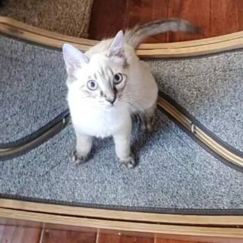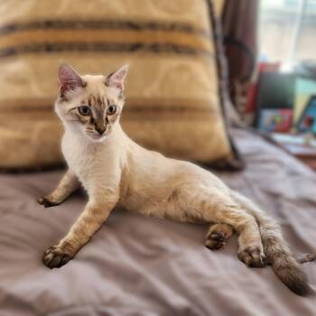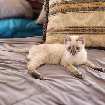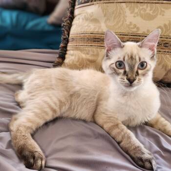 The applehead Siamese cat is a beloved breed known for its striking appearance, characterized by a sleek, slender body, striking blue almond-shaped eyes, and distinctive "apple" shaped head. Renowned for their affectionate and social nature, applehead Siamese cats are intelligent, vocal, and thrive on human companionship. Their short coat is typically seal point, chocolate point, blue point, or lilac point in coloration. With their playful and outgoing personalities, applehead Siamese cats make wonderful companions for those seeking a lively and interactive feline friend.