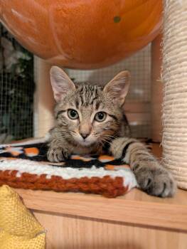 This handsome tabby hunk may look like he’s busy contemplating life’s deepest...