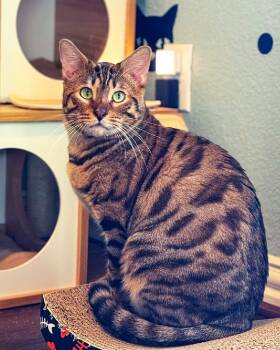 The Bengal cat is a unique and striking breed known for its wild appearance and playful demeanor. Developed by crossing Asian leopard cats with domestic shorthairs, Bengals have luxurious, soft coats with distinctive markings that resemble those of wild leopards. These intelligent and energetic cats make loving companions, forming strong bonds with their human families. With their active nature and love for play, Bengals require plenty of mental and physical stimulation to thrive in a home environment.