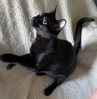 The Bombay cat is a sleek and sophisticated breed known for its striking resemblance to a miniature panther. With its stunning jet black coat and mesmerizing copper eyes, the Bombay is a breed that exudes elegance and charm. Despite its exotic appearance, these cats are affectionate, playful, and love human companionship. Known for their social nature and adaptability, Bombays make wonderful family pets and are sure to capture the hearts of all who meet them.