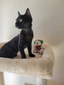 The Bombay cat is a sleek and sophisticated breed known for its striking resemblance to a miniature panther. With its stunning jet black coat and mesmerizing copper eyes, the Bombay is a breed that exudes elegance and charm. Despite its exotic appearance, these cats are affectionate, playful, and love human companionship. Known for their social nature and adaptability, Bombays make wonderful family pets and are sure to capture the hearts of all who meet them.