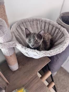 The dilute tortoiseshell cat is a unique and beautiful feline breed known for its distinct color pattern of soft pastel hues blending together in a marbled or patchy fashion. These cats typically have a mix of grey, cream, and pale orange fur, with some variations including hints of blue or lavender. Dilute tortoiseshells are often affectionate, spirited, and independent pets, known for their playful and engaging personalities. With their striking coloring and engaging personalities, dilute tortoiseshell cats make wonderful companions for cat lovers seeking a charming and lively feline friend.