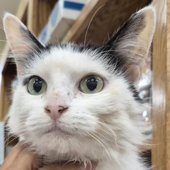 DORIS ~~ Spayed Female, Senior Pet, White and Black, Domestic Longhair, 5.9lbs, DOB: 10/12/2017