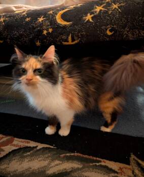 Jade is a stunning long-haired calico with a soft, silky...