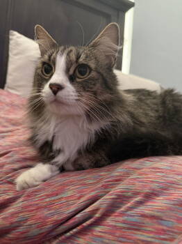 Muffin is a young adult female DMH tabby in search of a new home. She is extremely food-motivated, particularly by...