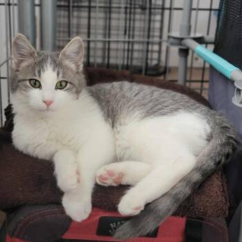 Justice is a playful talkative kitten who loves affection and food. This bright little athlete fills a room with personality....