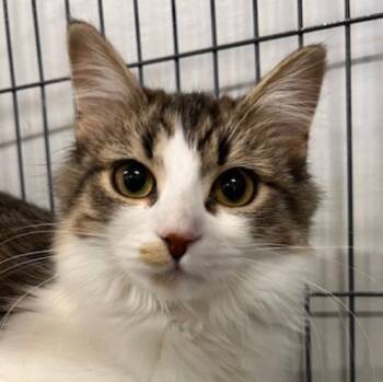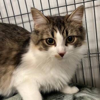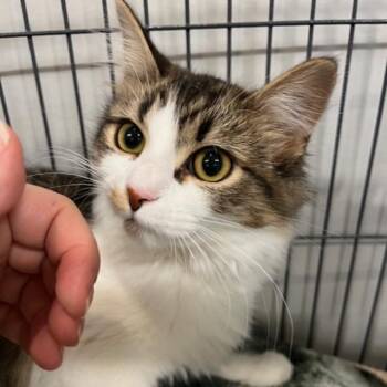 Gretchen is an unusually beautiful, long haired kitten with white fur underneath and tabby above. She is...