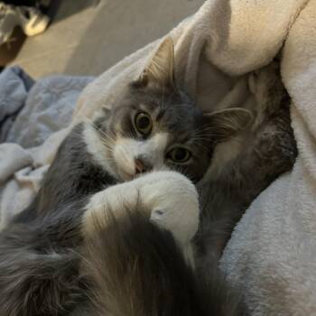 Meet Sheldon, an adorable grey and white fluffy foster cat with three legs and a heart full of love! Found...