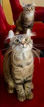 The American Curl is a unique and elegant breed known for its distinctive curled back ears that give it a charmingly friendly and alert expression. This medium sized cat is prized for its playful and affectionate nature, making it an ideal companion for families and individuals alike. With a silky coat that comes in a variety of colors and patterns, the American Curl's most striking feature is its curled ears, which begin to develop at around 16 days old. Overall, the American Curl is a delightful and loving breed that brings joy and warmth to any home.