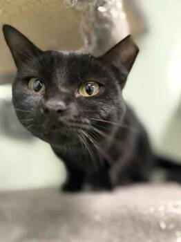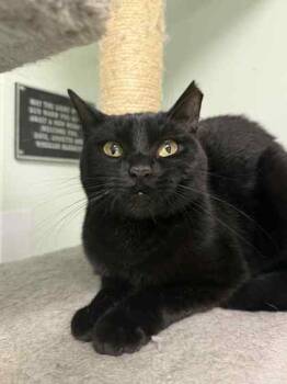 Hello. I'm Kendra, a 7-year-old black cat with a gentle soul.