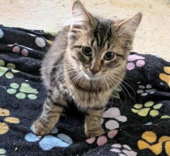 This fluffy tabby girl is the little sister to her 4 brothers! She loves to play with string...