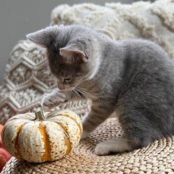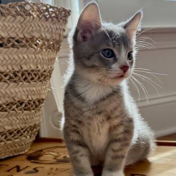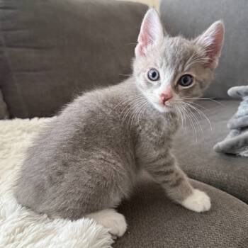 Say hello to Schroeder, a handsome medium-haired grey kitten with the softest white paws and a perfectly painted white face....