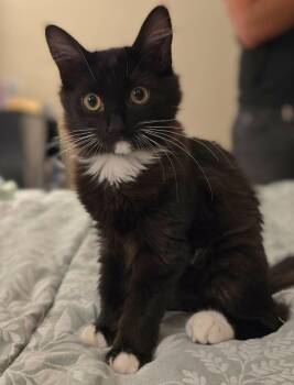 Miss Mittens is a luscious, medium haired, tuxedo lady. Her active, enthusiastic attitude makes her the perfect playmate and leader....