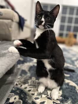 Playful and Affectionate Elin and Skadi are two gorgeous, petite tuxedo sisters, one short hair and one medium hair. These...