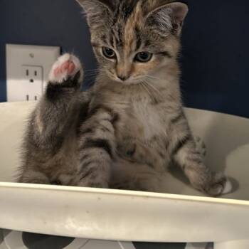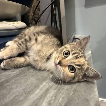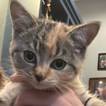 Meet Lint.This adorable little girl was dropped off in front of the sanctuary with her mama, Dusty