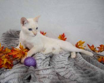 The Siamese cat breed is known for its striking appearance characterized by a slender body, almond shaped blue eyes, and distinct color points on their ears, face, paws, and tail. Renowned for their vocal nature and high intelligence, Siamese cats are affectionate, sociable, and thrive on human interaction. Their sleek coat requires minimal grooming, making them an ideal choice for busy pet owners. With their playful and outgoing personalities, Siamese cats make wonderful companions and are cherished by many cat lovers.