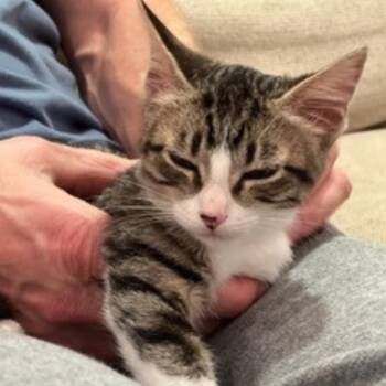 Skids is a petite and beautiful brown, gray, and white short-haired tabby who was the runt of her...