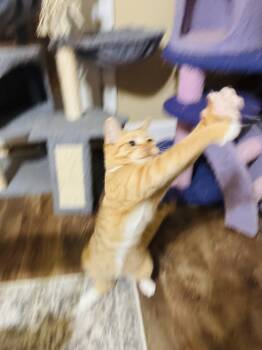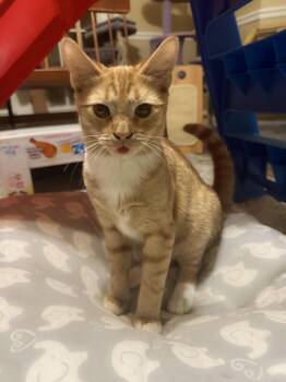 Hey there- I’m Elk! I’m a velvety orange boy with big yellow eyes, little white boots and the spunkiest personality....