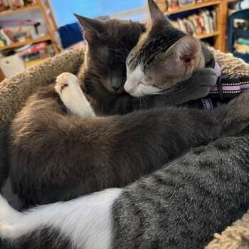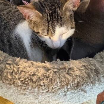 Hi, my name is Gabriel and I am a black/white tabby male born 06/26/2025. I enjoy playing with my toys...