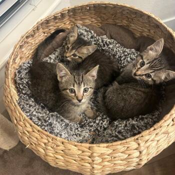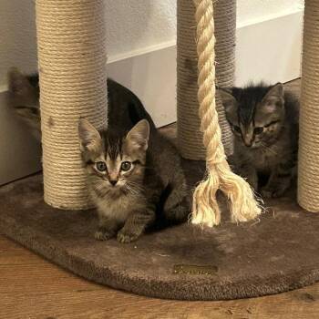 Hi my name is Pumpkin! I am black tabby male kitten born 9/11/25. I am a leader to my brother...