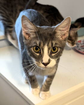 Cassian is a friendly male domestic short haired silver...