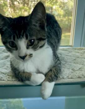 Sweet and friendly girl about 4-5 months old, good with other cats.