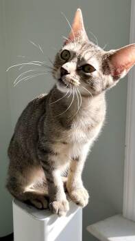 Sapphire is a distinctive looking light- colored tabby with a sparkling personality. She is about five months old, friendly, and...
