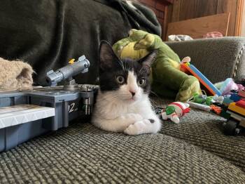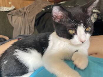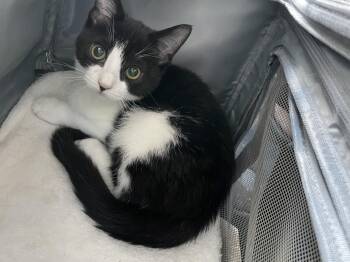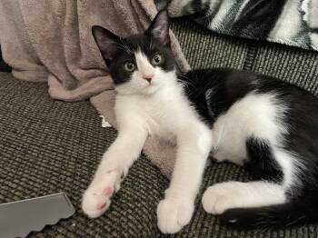 Bud / Male / 4 Months / DSH - Black and White / Dogs: Yes / Cats: Yes / Kids:...