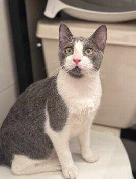 Carrie is a 6-month-old, 6 lb gray-and-white tuxedo beauty with a playful, independent spirit. This curious little huntress...