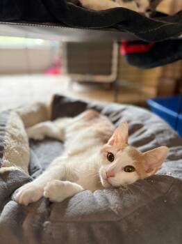 Boo is a four-month-old orange-and-white boy with a heart full of love...