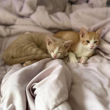This is cutie-pie Blondie, a sweet-natured buff kitten with white paws...