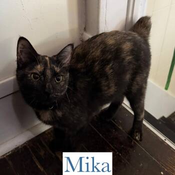 Mika is a GORGEOUS little tortoishell of a kitty, with a perfect little heart shaped face and demure almond eyes....