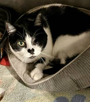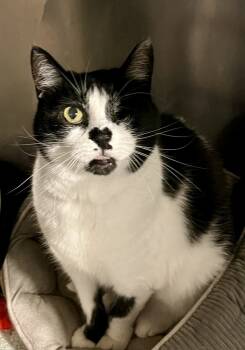 Valentina is a sweet 12-year-old black-and-white beauty with the most adorable heart-shaped marking on her...