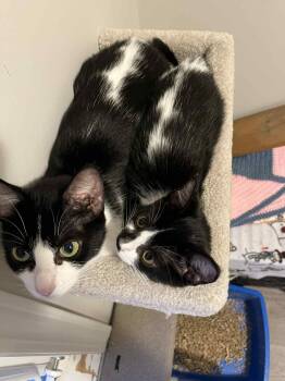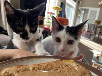 Meet Miss Vickie (momma – black & white) and her kittens – Kettle (black & white/black patch on her nose)...