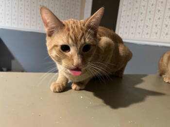 Muenster comes from a feral litter that showed up on our fosters back porch. He is the shyest of his...