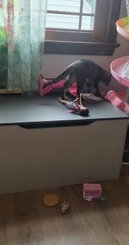 *Must be adopted into a home with a friendly and playful cat or one of her siblings.