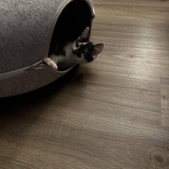 Meet Prim! This 11-week-old female tuxedo kitten is bursting with personality and charm. Prim has cerebellar hypoplasia (CH)—sometimes called “wobbly...