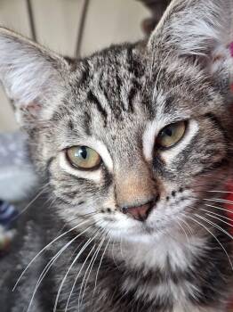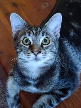 With his striking, dark tabby coat and galaxy-like markings, Mercury is a cosmic cutie with a big cuddly personality. His...