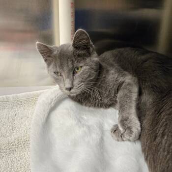 With his stormy grey coat and mysterious golden eyes, Thriller is the purrfect mix of spooky and sweet....