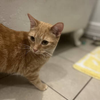 Turbo Blaster is ready for takeoff into her forever home! This little orange cat may start out a little shy...