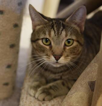 Poppy was found in the parking lot at the GE Industrial Park, which is an unusual place for a cat...