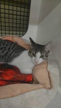 Sweet, outgoing and playful. Good with other cats and respectful dogs and children.