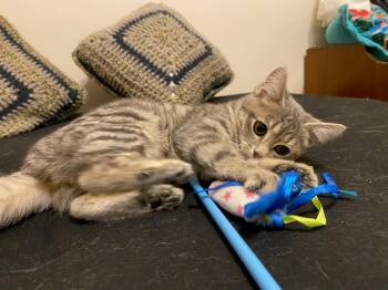 Petunia is a very sweet and playful kitten! She showed up at our house and was quick to warm up...