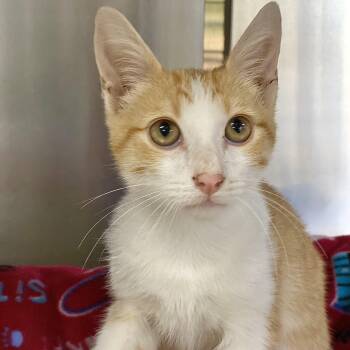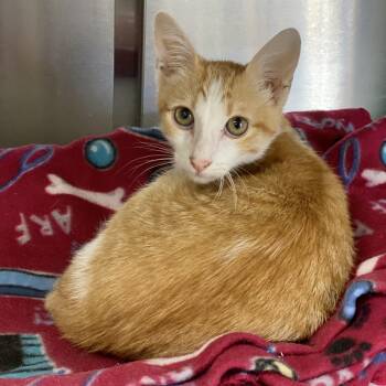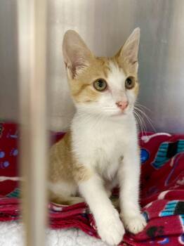 Harris is a handsome orange and white young man who loves to play with ping pong balls and be petted...