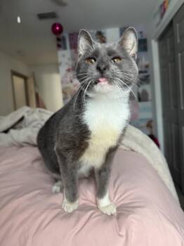Meet Baby Gray, a beautiful gray and white domestic shorthair with bright eyes, endless energy, and a heart full of...