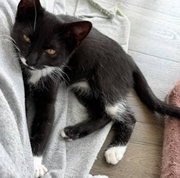 Fallon is a darling tuxedo kitten with a sweet and gentle nature. The only girl among her three...