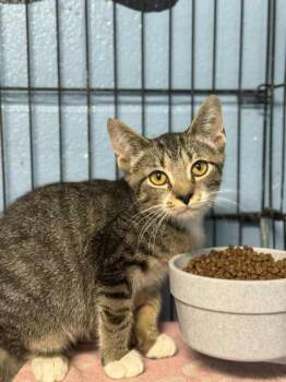 DSH brown tabby/white male, 2 months old, neutered, stray